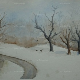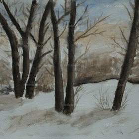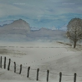 winter, schnee, aquarell, winter